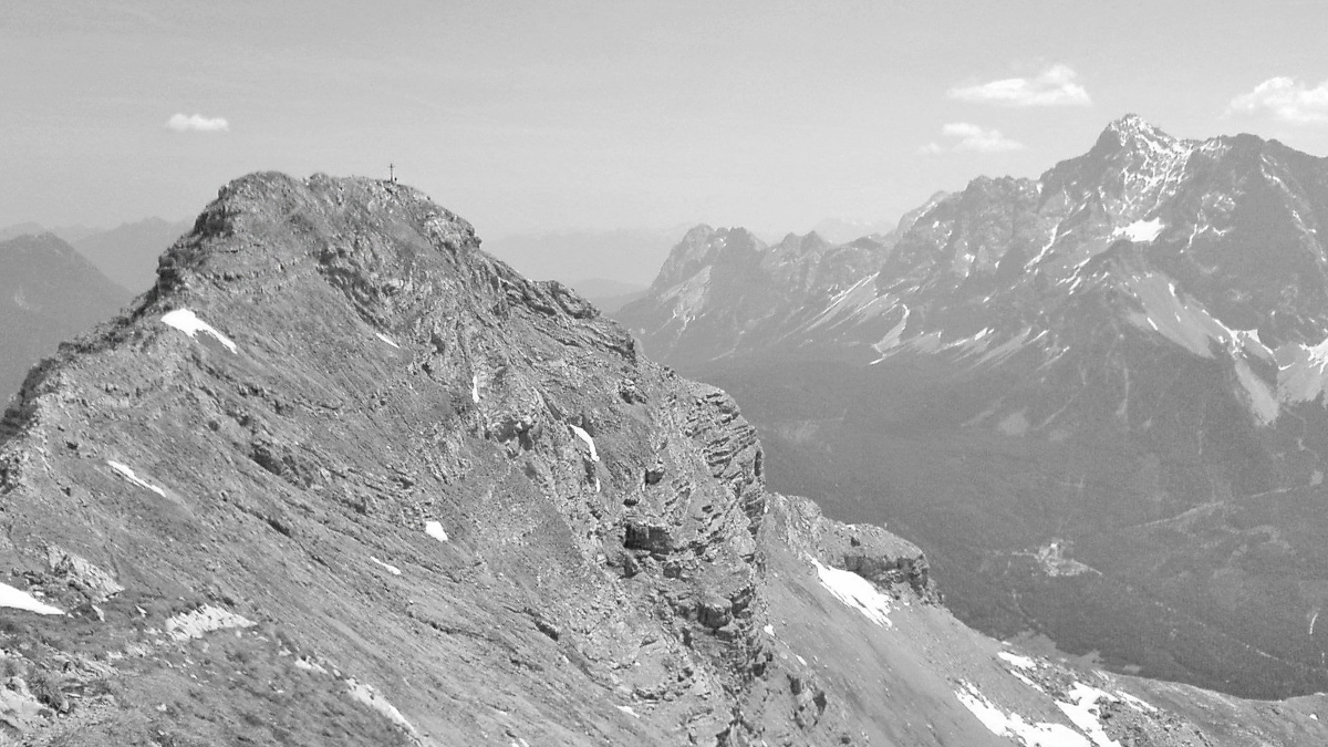 von der Upsspitze geht es hinüber zum Daniel - im Hintergrund das Wettersteinmassiv mit der Zugspitze
