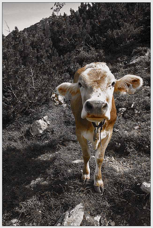 Ein neugieriges Jungrind auf der Sebenalm bei Grän