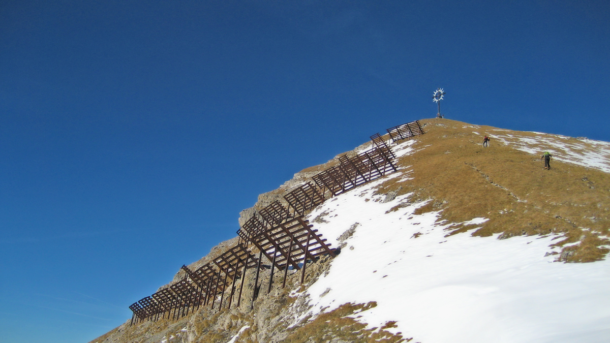 nicht unbedingt schön aber notwendig für die Sicherheit im Tal - Lawinenverbauungen am Gipfel der Kohlbergspitze