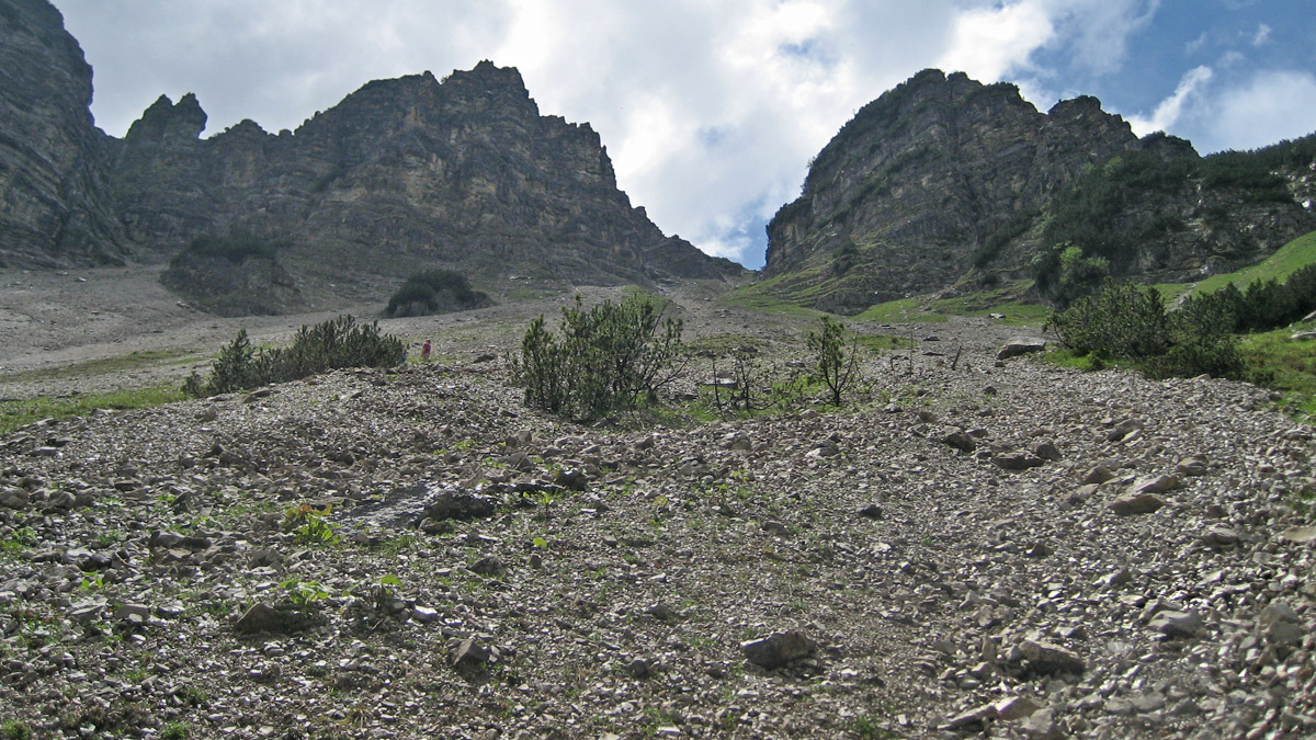 eine ausgedehnte Schotterabfahrt bietet sich im oberen Teil des Hochgrießkars an