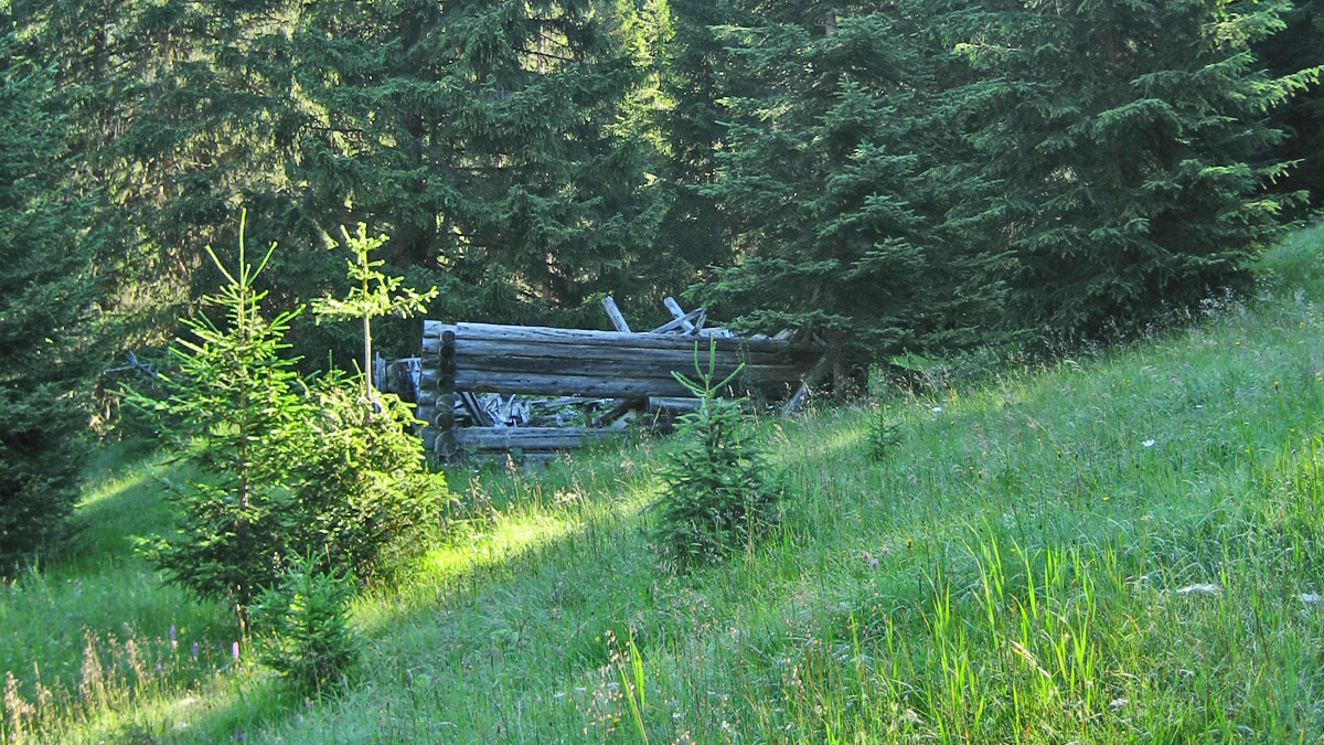 die Reste der Bichlwaldhütte über dem Rotlechtal