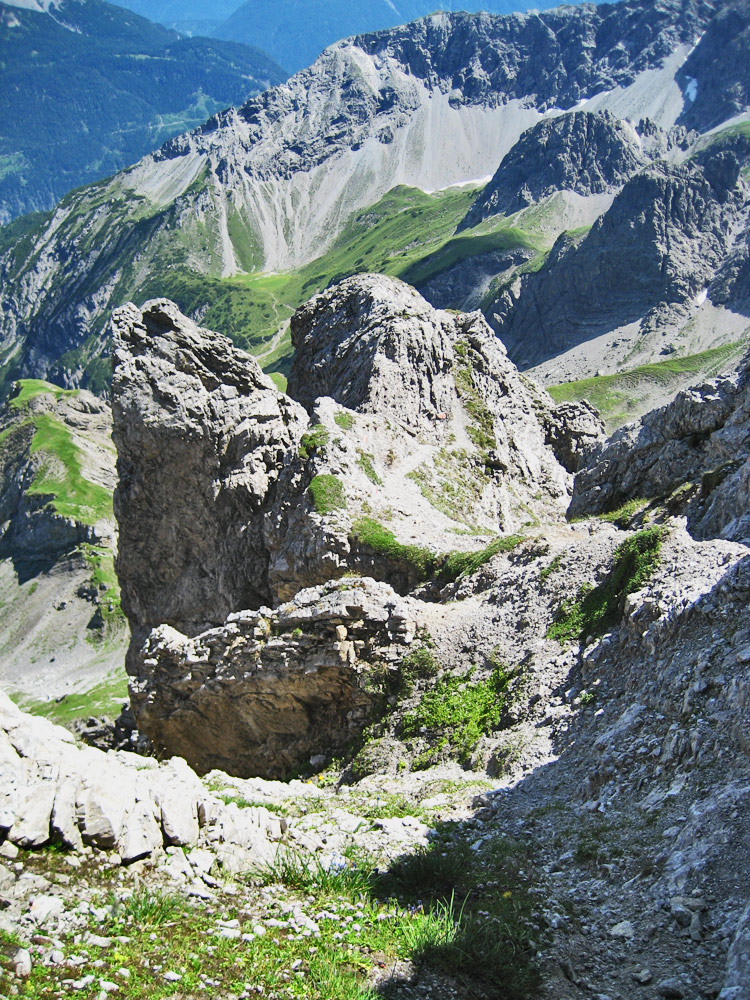 Rückblick auf den teilweise versicherten Südsteig am Roten Stein