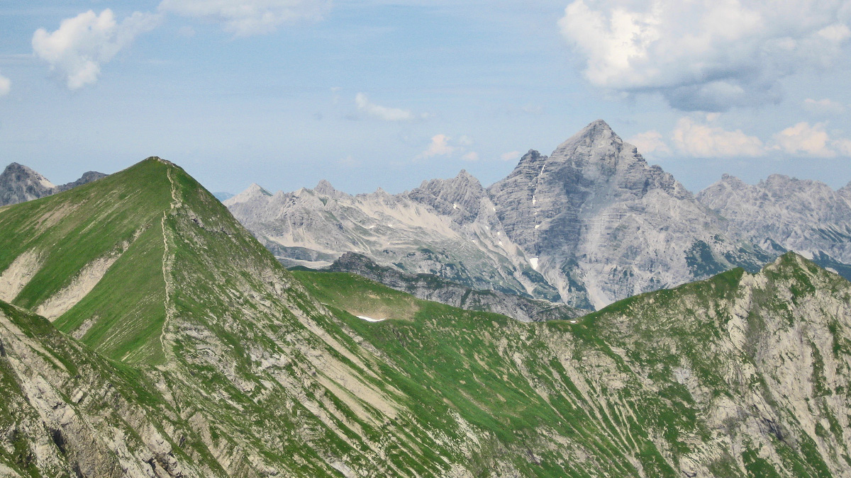 Ausblick vom Kreuzeck hinüber zum Rauheck und dem Hochvogel
