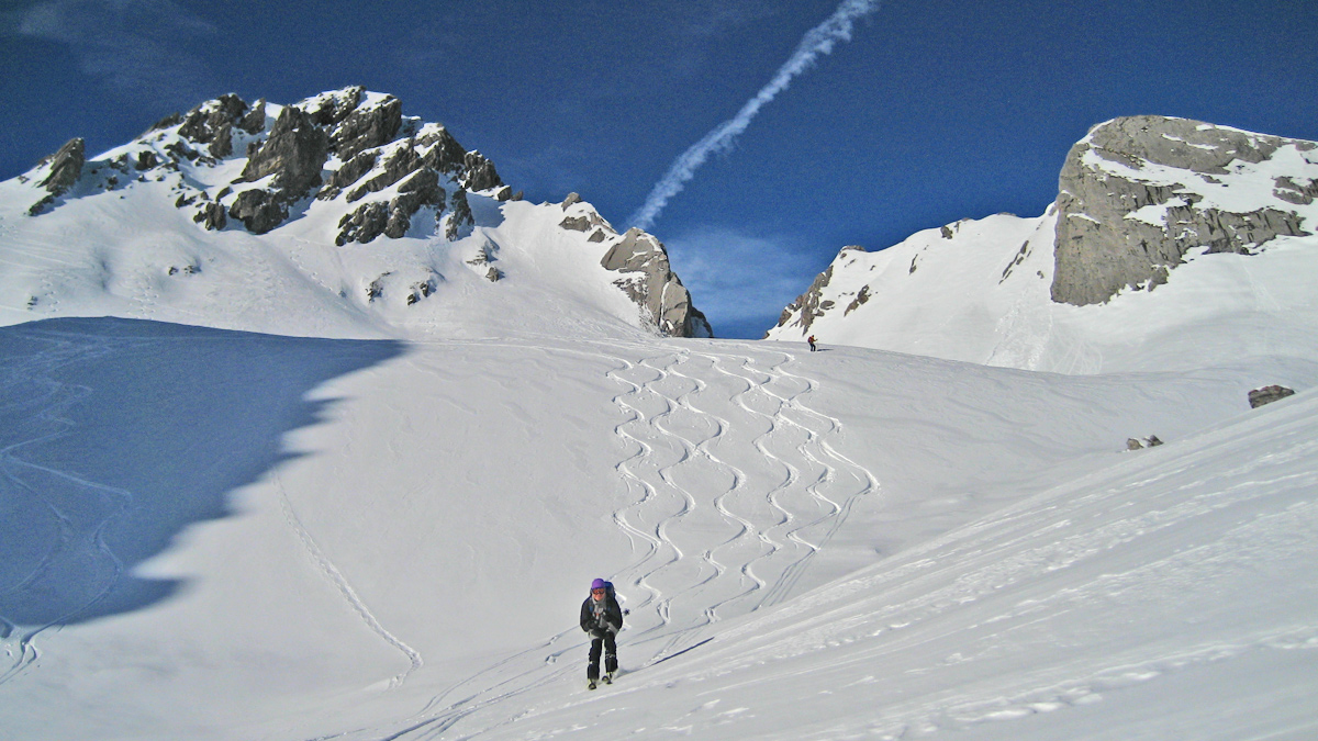 Abfahrt über die Roter Stein Ostflanke in Richtung Galtberghütte