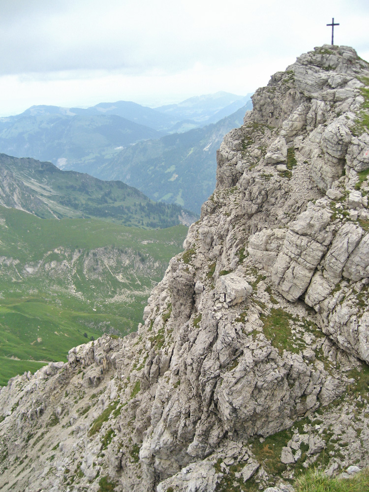 der Gipfel des Kleinen Daumens mit dem steil abfallenden kurzen Wandstück im Norden