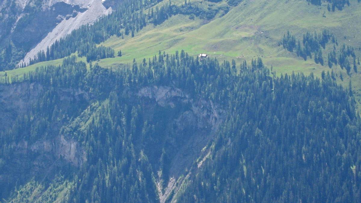 die Saxeralpe aus der Vogelperspektive - unterhalb jene Wand in welcher die junge Anna Knittel einst das Adlernest ausgehoben hatte, daraus entstand in Folge die Figur der 'Geierwally'