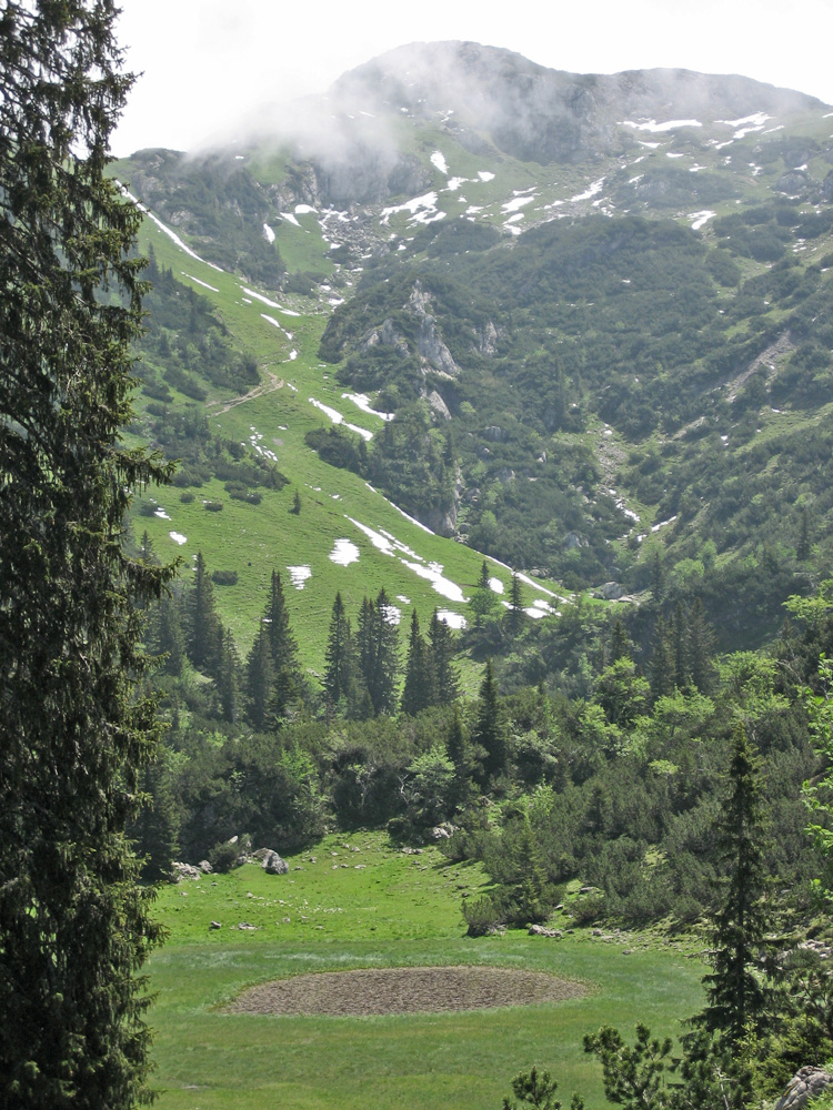 die Sefenspitze - darunter der bereits zum Großteil verlandete See welcher dem Sebental den Namen gab