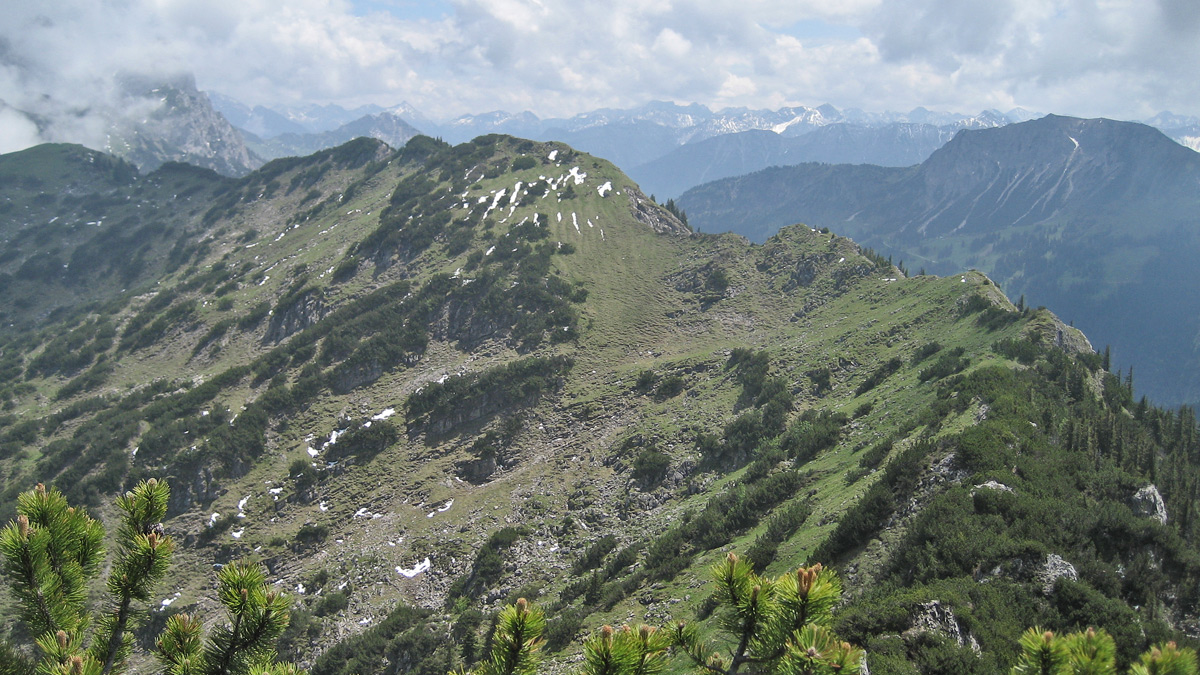 Ausblick vom Gipfel des Seichenkopfes hinab zum Lumberger Grat