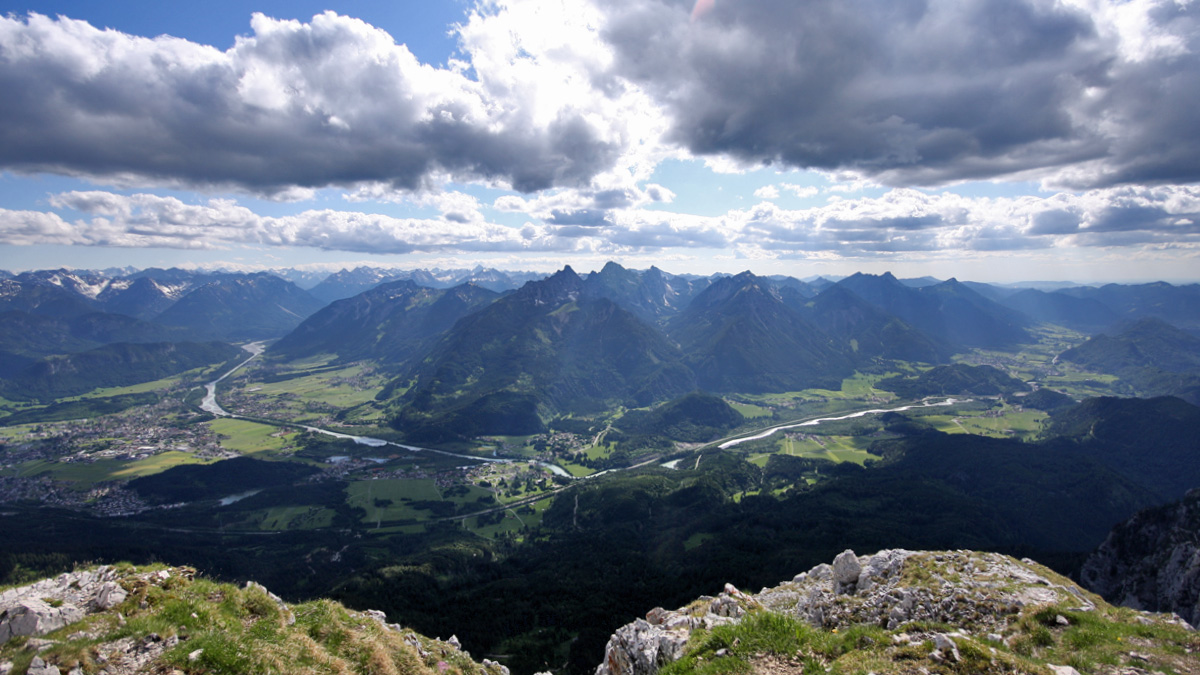 Blick vom Säuling hinab in den Talkessel von Reutte