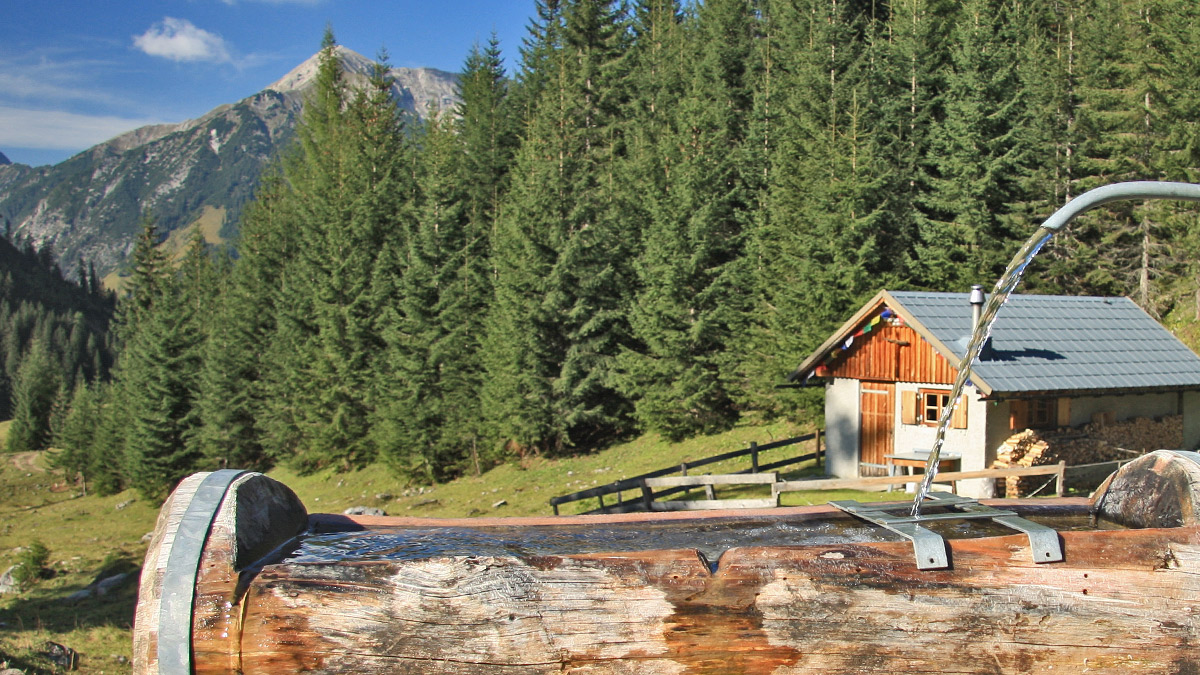 die Kesselwaldhütte (Jagdhütte) am Sagboden, dem Eingang ins Faselfeiltal