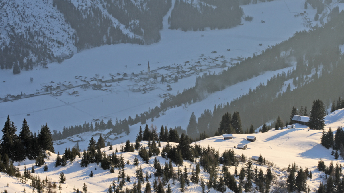 Ausblick auf die Hofalm über dem winterlichen Stockach