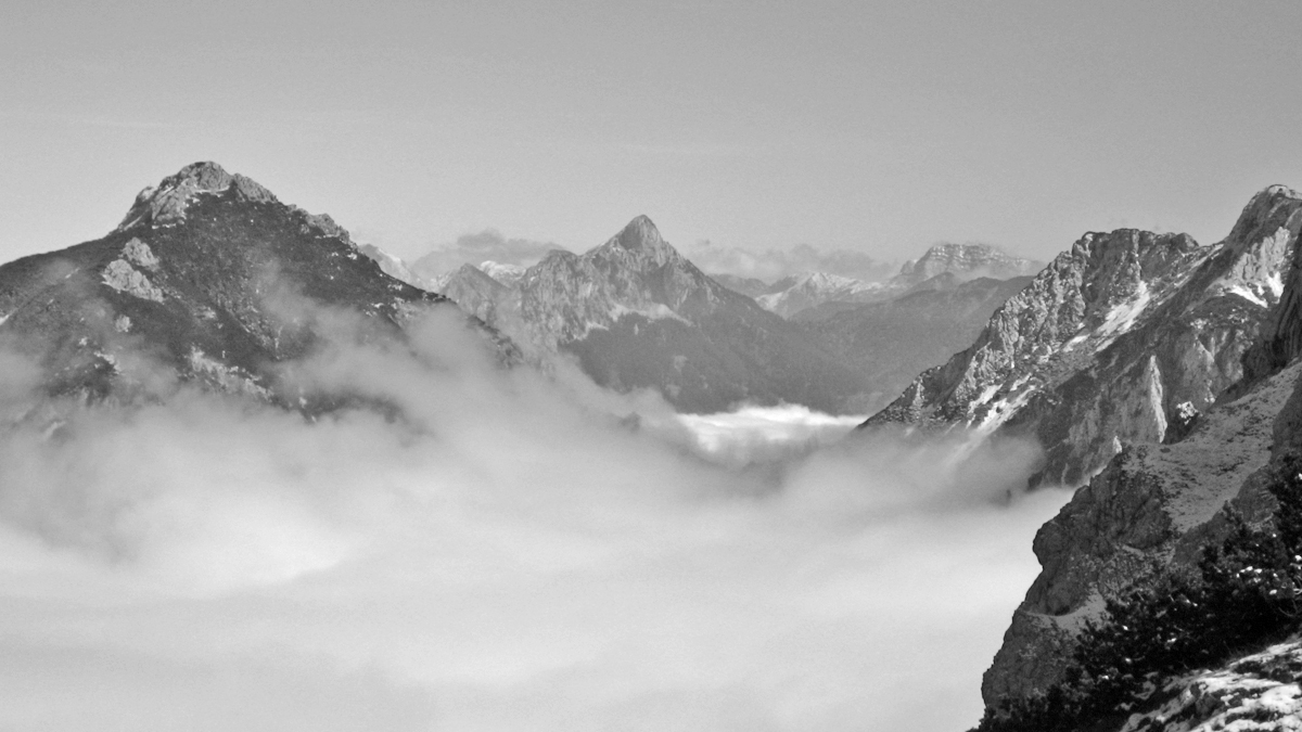Ausblick vom Vilser Jöchl hinüber zum Vilser Kegel und dem Säuling über dem Nebelmeer