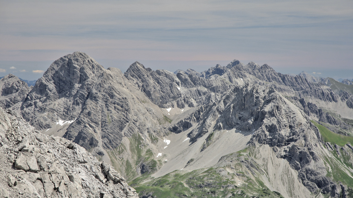 Gipfelblick vom Hohen Licht hinüber zu der Hornbachkette