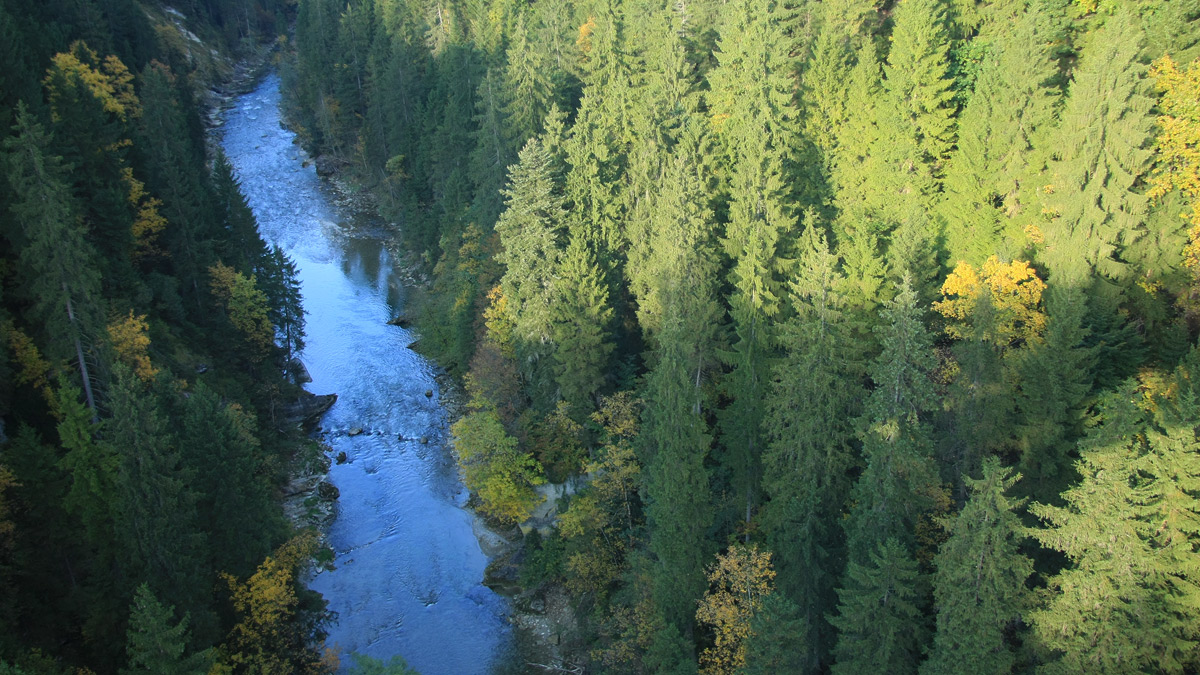 Tiefblick hinab von der 76 Meter hohen Echelsbacher Brücke in das Ammertal