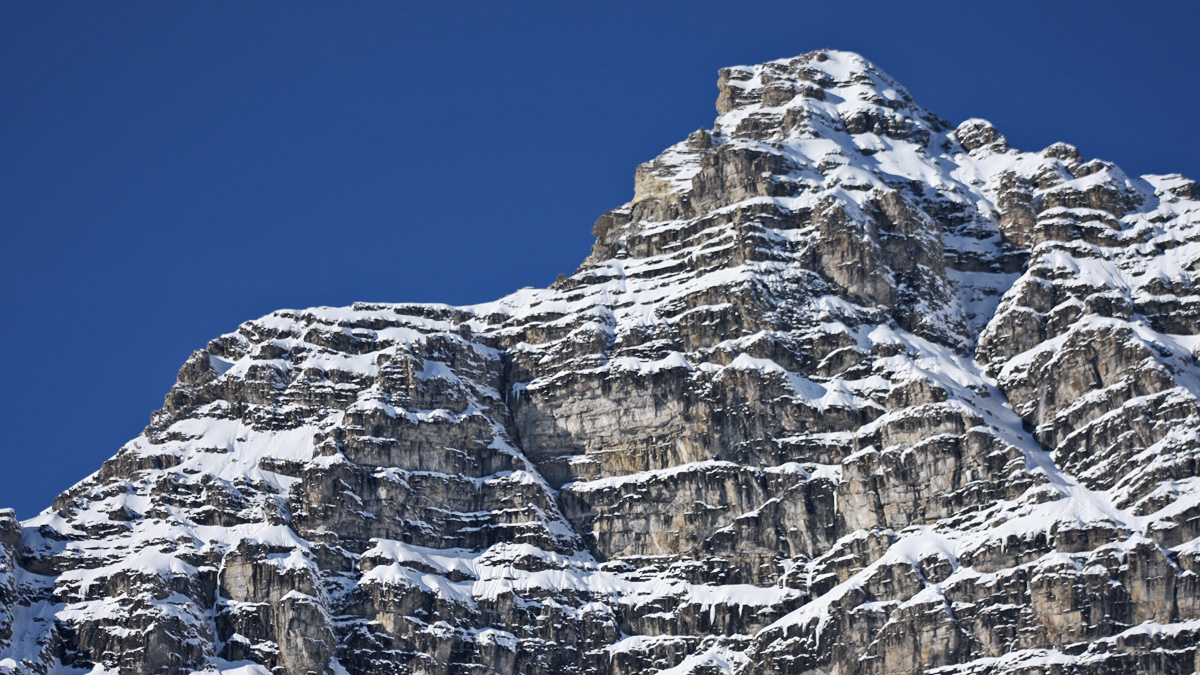 die Südostwand des Hochvogels - über Jahrmillionen lagerte sich Sediment am Meeresgrund ab und wurde durch die Plattentektonik in eine Höhe von knapp 2600 Metern gehoben