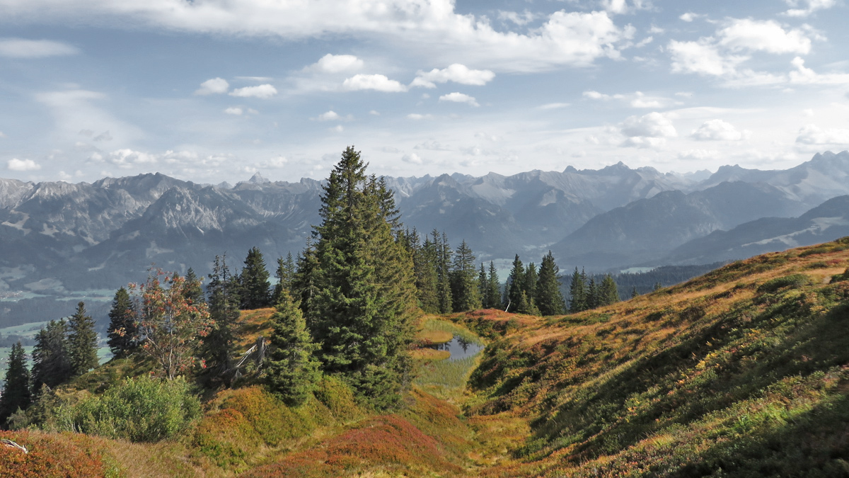 Herbststimmung am Wannenkopf und dem kleinen Moorsee in Gipfelnähe
