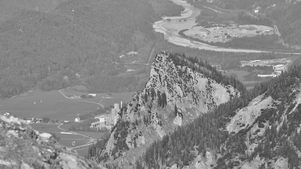 der Rote Stein - im Hintergrund das Vilser Gewerbegebiet