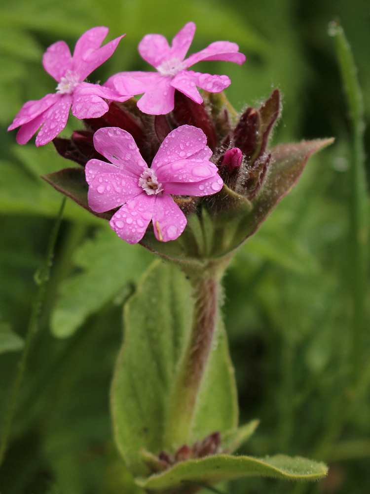 die Rote Lichtnelke (Silene dioica) oder auch Taglichtnelke nach einem Regenschauer