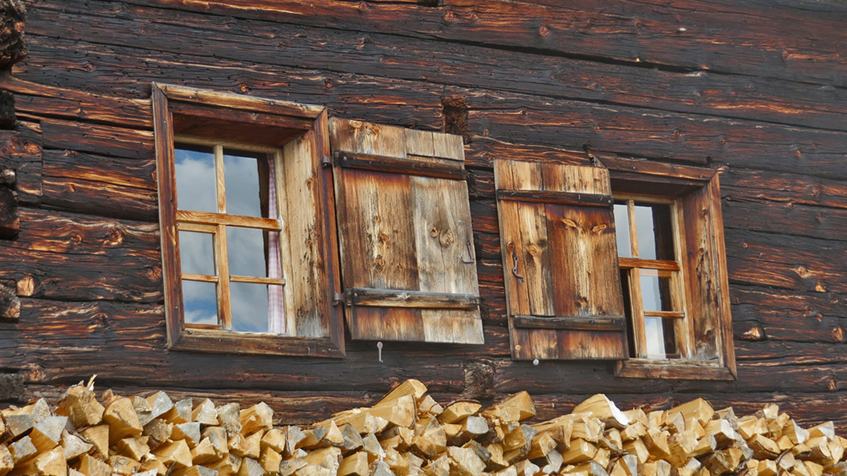 die dem alpinen Klima angepasste Architektur der Walserhäuser im Ortsteil Berngat bei Rehmen / Schoppernau