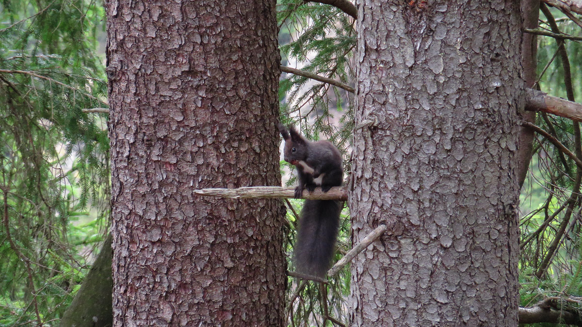 das Eichhörnchen futtert seine letzten Vorräte auf