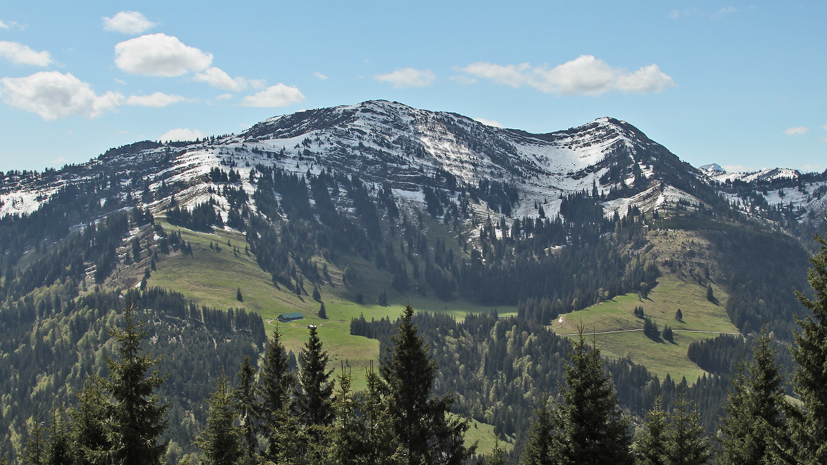 Blick auf das Gebiet der Buralpe - darüber der Buralpkopf (li.) und der Gündleskopf