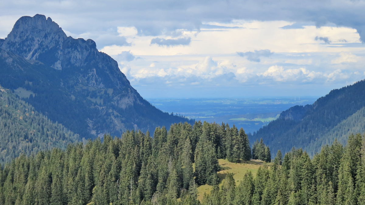 der abgerundete Kopf des Widdereggs im Vordergrund - dahinter der Säuling (li.) und das Alpenvorland