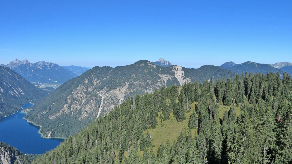 Blick aus dem Neualpkar über den Plansee hinweg zum Zwiesel - rechts vorne der Spießberg