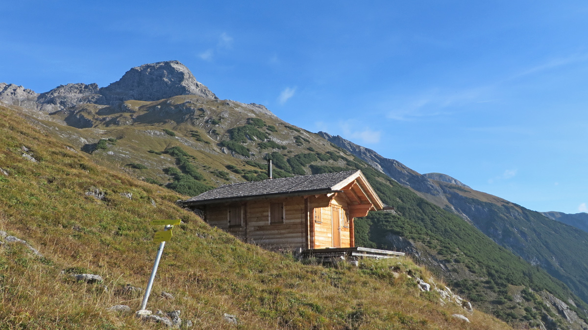 an der neuen Jagdhütte zweigt der Weg in das Peischelkar ab - darüber der Wilde Kasten