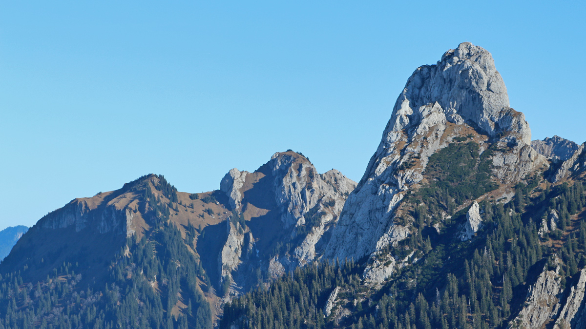 der Vorderscheinberg und die schroffe Gipfelsäule des Geiselsteins
