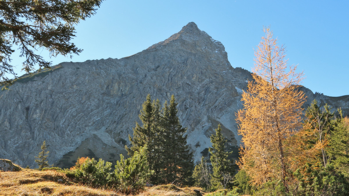 Blick vom Meirtl hinauf zu der Nordwand des Daniel
