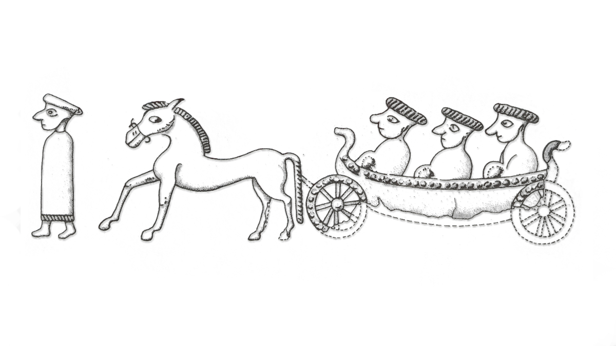 Abbildung eines rätischen Reisezuges mit Wagen und Pferd