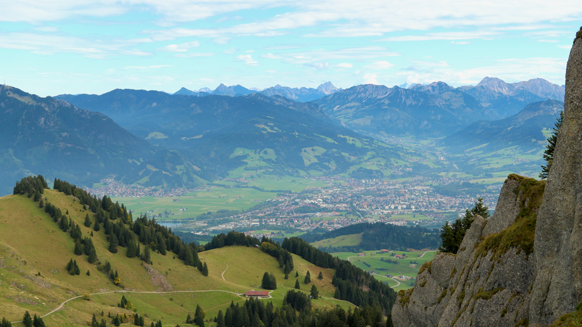 Blick hinab zur Vorderen Krumbachalpe und ins Illertal bei Sonthofen