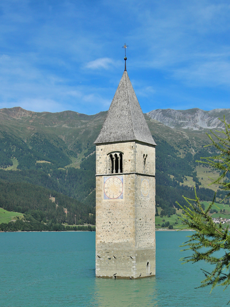 Schlüsselwörter: reschensee kirchturm graun