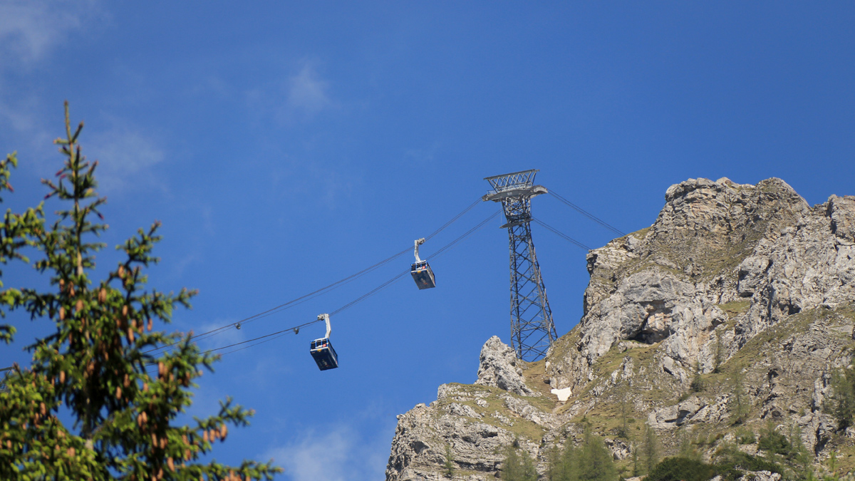 die Gondeln der Ehrwalder Zugspitzbahn transportieren das zahlende Publikum auf Deutschlands höchsten Berg