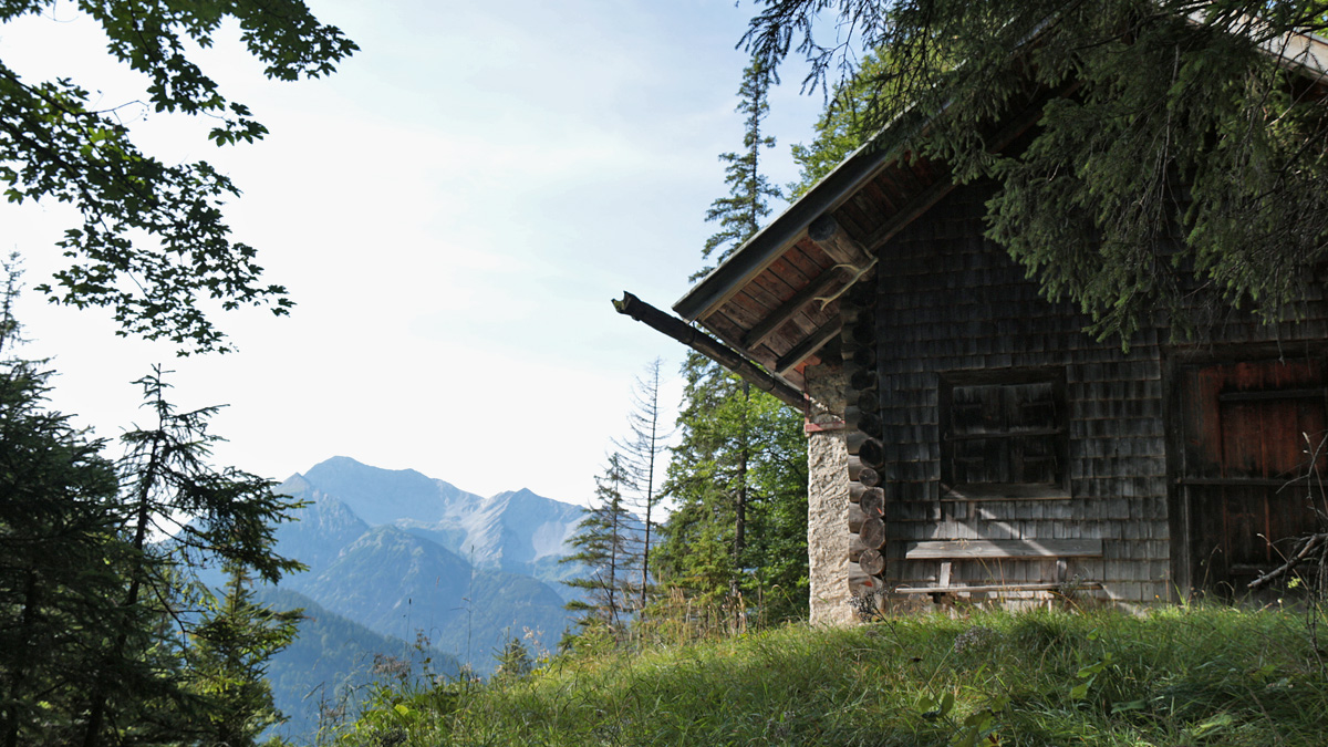 Ein kleiner Steig leitet ein paar Meter um einen Kopf herum zu einer Hütte (Jagdhütte?). Der in den Karten genannte Wurzerriß ist erreicht.