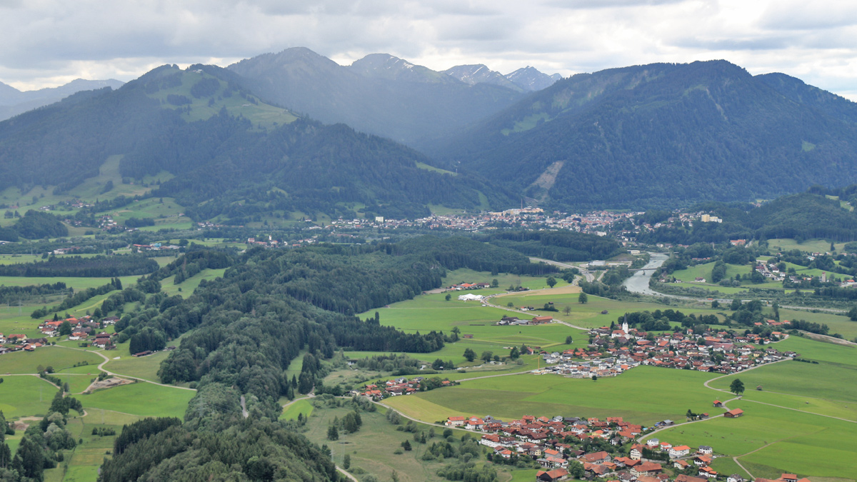Blick vom Falken (Rottachberg) hinab in das Tal der Iller bei Untermaiselstein - im Hintergrund Immenstadt