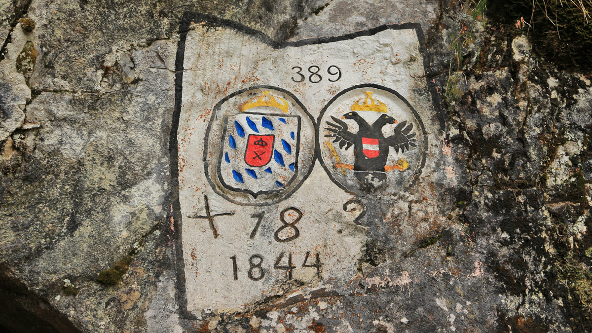 Fels mit Grenzmarke 389 am Höllentalschrofen