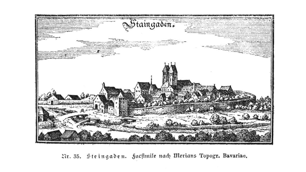 historische Ansicht von Steingaden mit dem Welfenmünster (aus 'Geschichte des Allgäus' - Baumann; 1883)