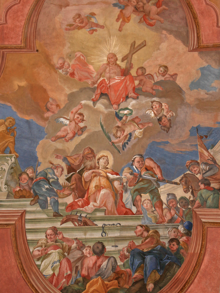 Fresko am Dachgewölbe des Langhauses in der Pfarrkirche hl. Katharina in Lermoos von Giuseppe Gru - das Gemälde zeigt die hl. Katharina kurz vor ihrer Enthauptung
