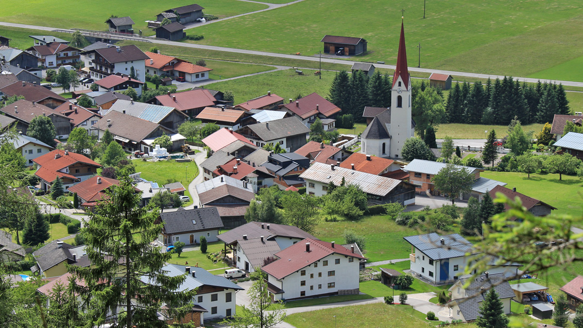 der Ortskern der Gemeinde Elmen mit der Pfarrkirche zu den Heiligen Drei Königen