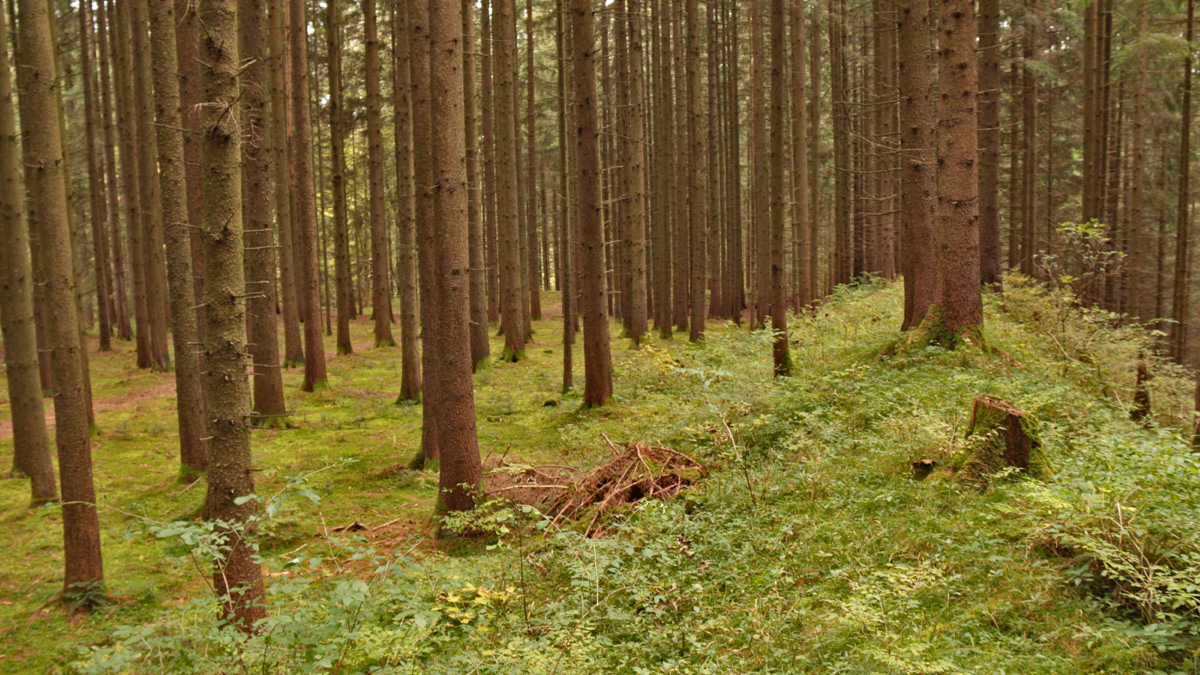 Reste von Wällen einer im Kern auf die Keltenzeit zurückreichende Fliehburg der Hunnenzeit bei Ottacker