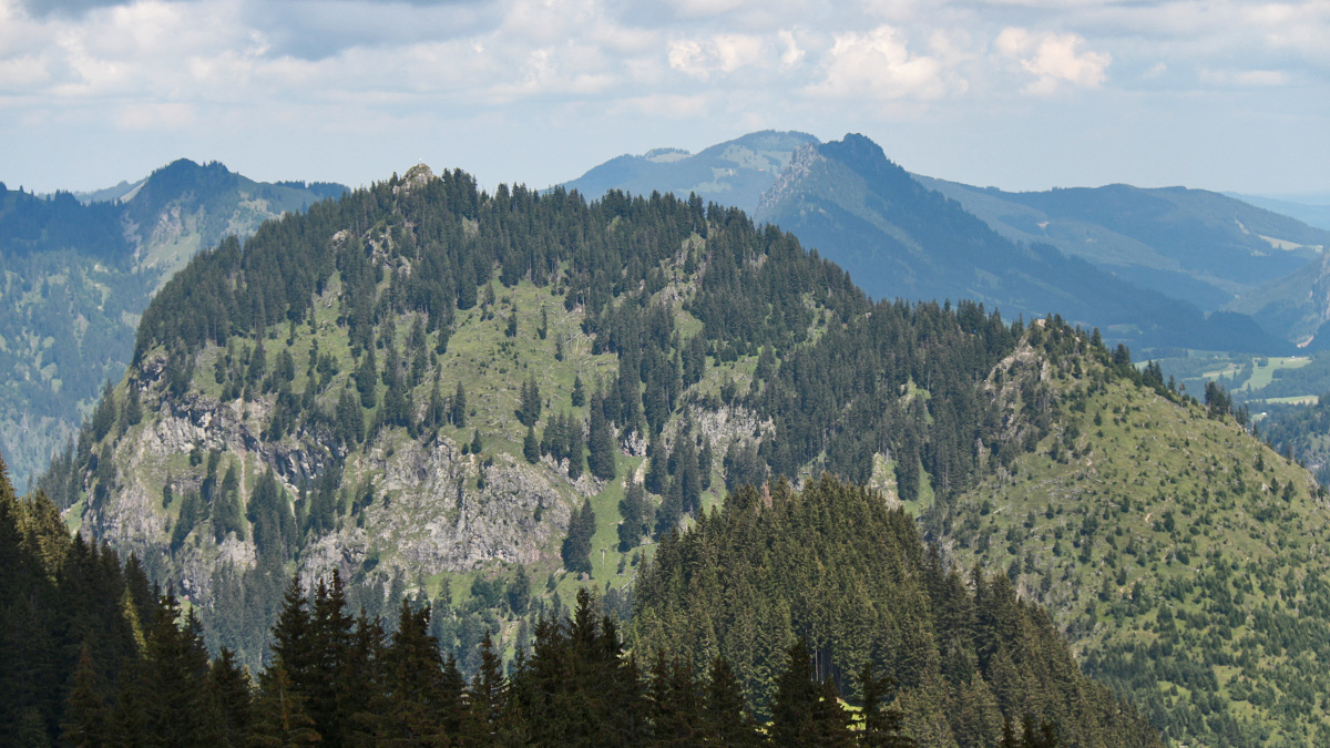 Gipfelblick vom Sonnenkopf hinüber zum Imberger Horn und dem Strausberg (re.)