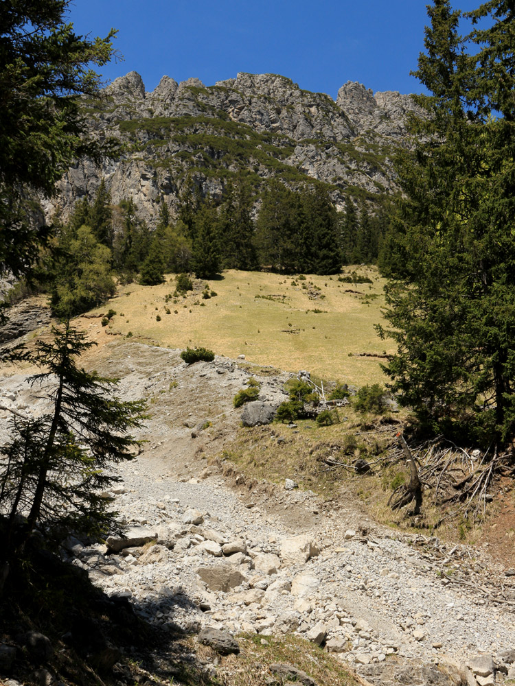 die ehemaligen Bergmähder am Durrach unterhalb der Schrofenflanke des Haarigen Rückens