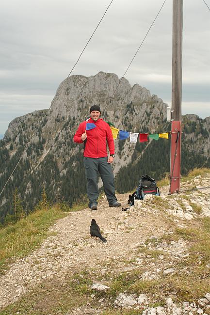 Flo mit original tibetischer Gebetsfahne am Gipfel des Koflerjoches (Jochberg)