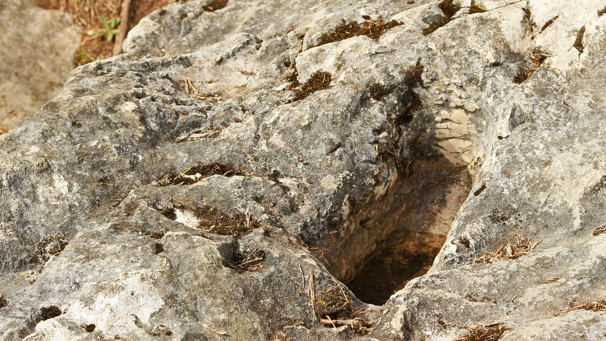 der Mang-Tritt - eine Vertiefung am Felsplateau oberhalb der Lechschlucht - vermutlich schon heidnischer Opferplatz wurde er mit der Magnus-Legende sodann christlich umgedeutet