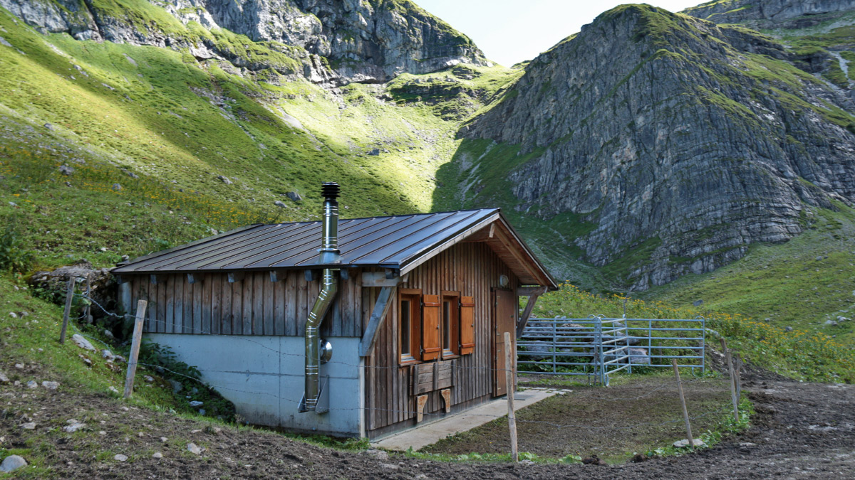 die Stierlochalpe am Übergang des Stierlochjoches von der Ravensburger Hütte nach Zug