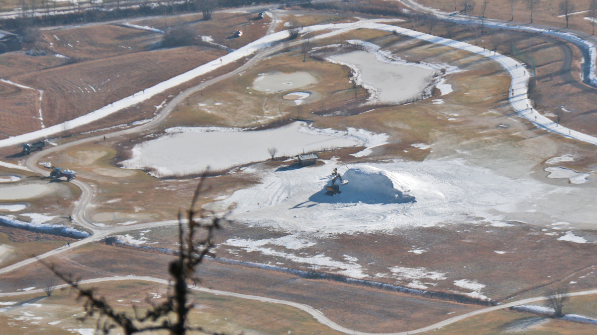 ein zweifelhaftes Wintervergnügen im Moos bei Ehrwald - der mit Schneekanonen produzierte Schnee wird mit Bagger und Traktor auf die umlaufende Loipe verteilt