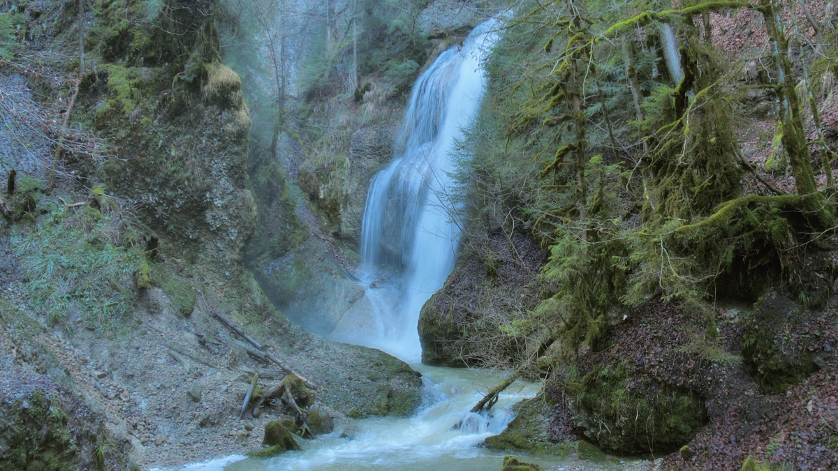der Schrattenbach donnert im Falltobel bei Niedersonthofen in die Tiefe