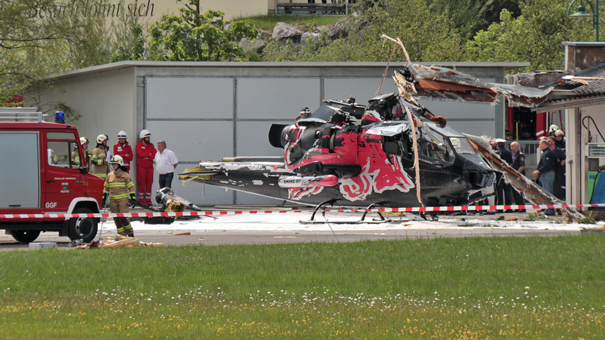 die verunfallte Bell Cobra am Flugplatz Höfen