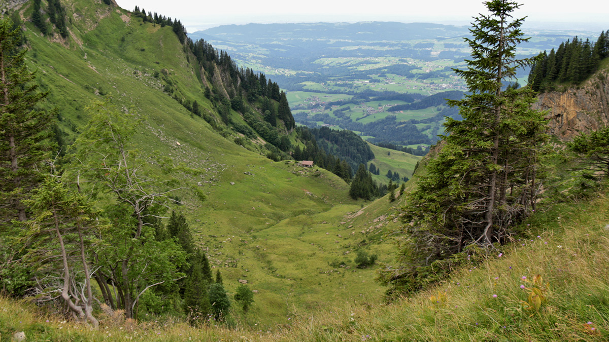 Blick hinab in den Kessel der Guntenalpe